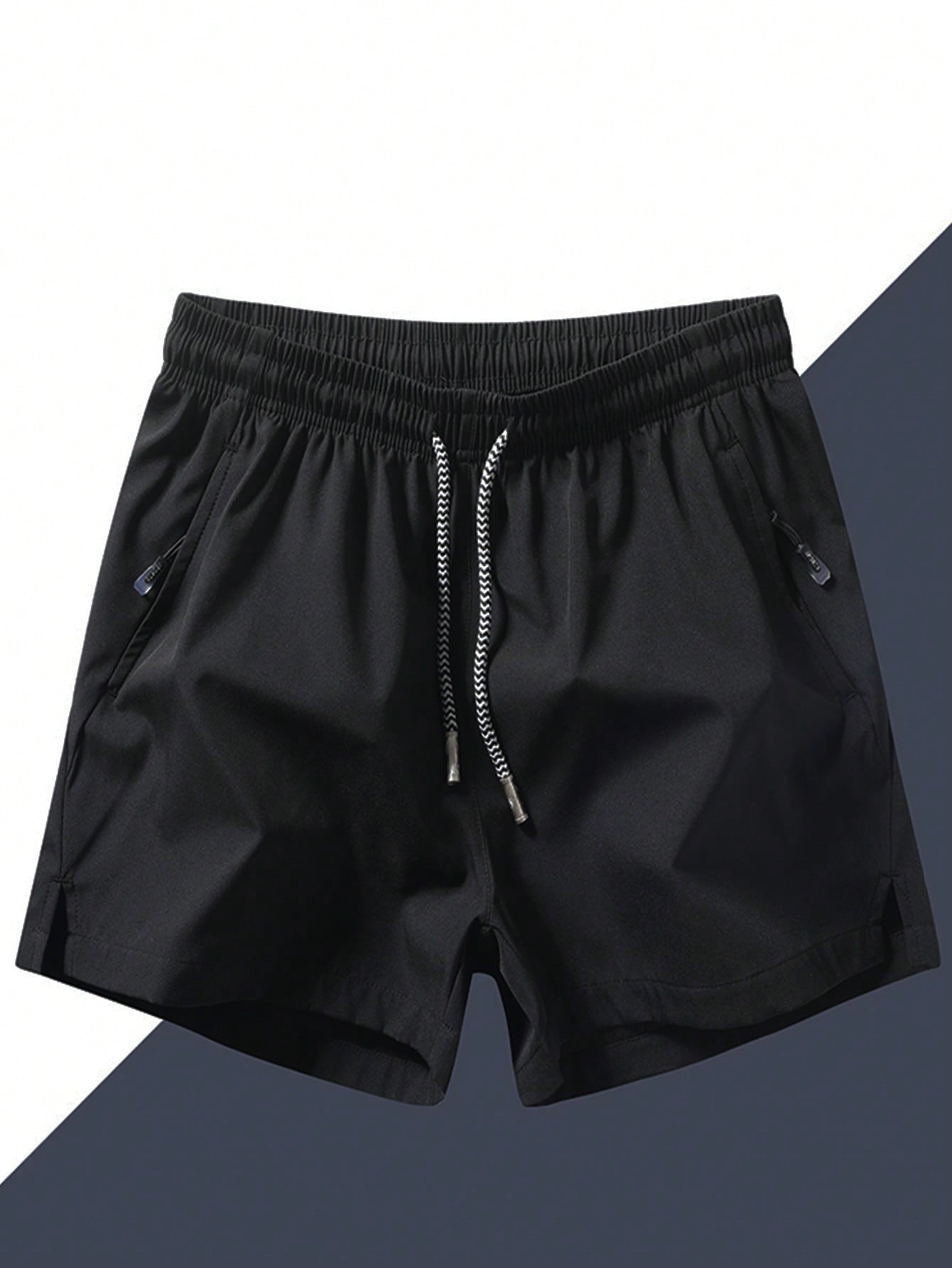 Men Contrast Tape Tee With Drawstring Waist Shorts