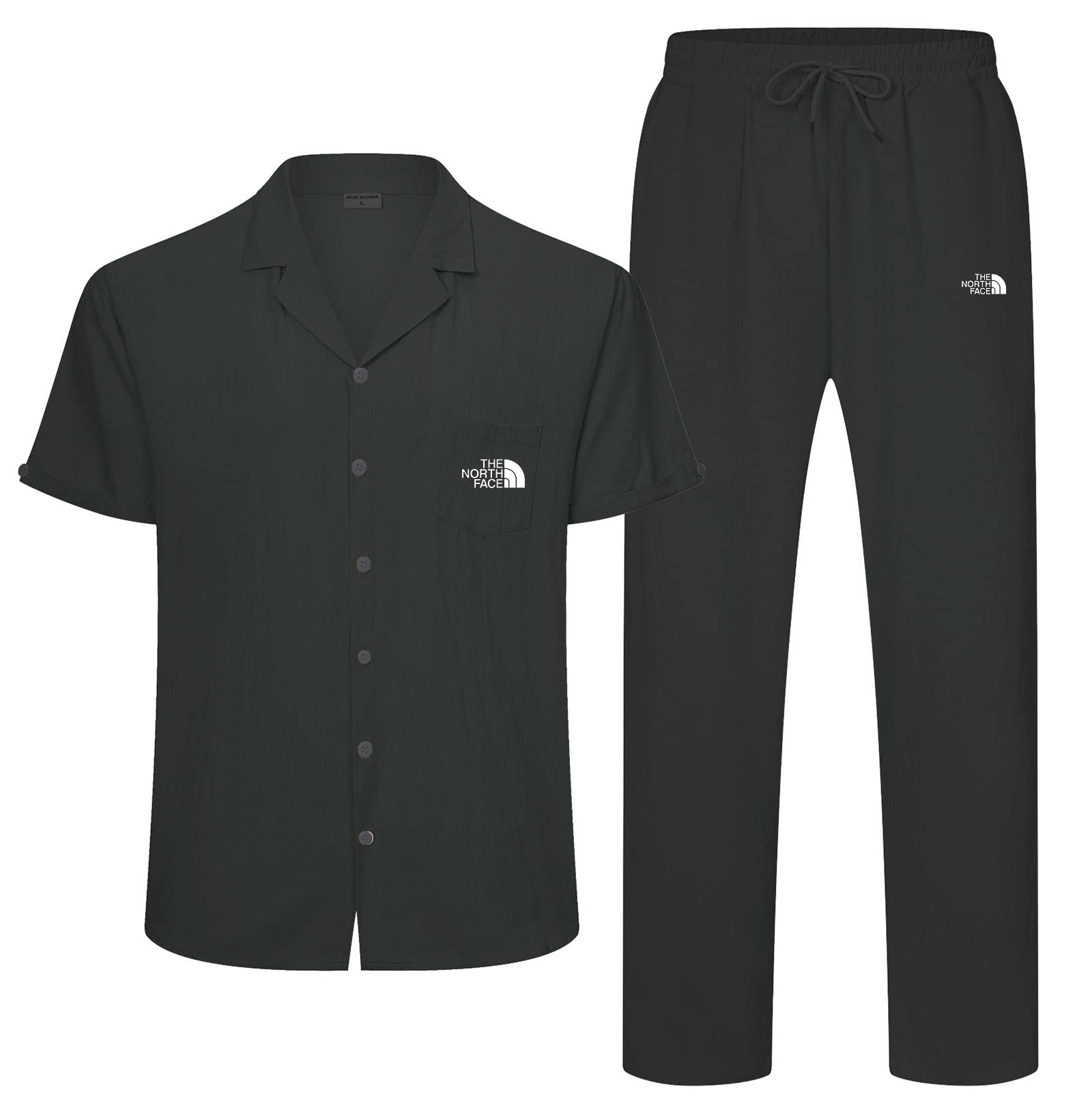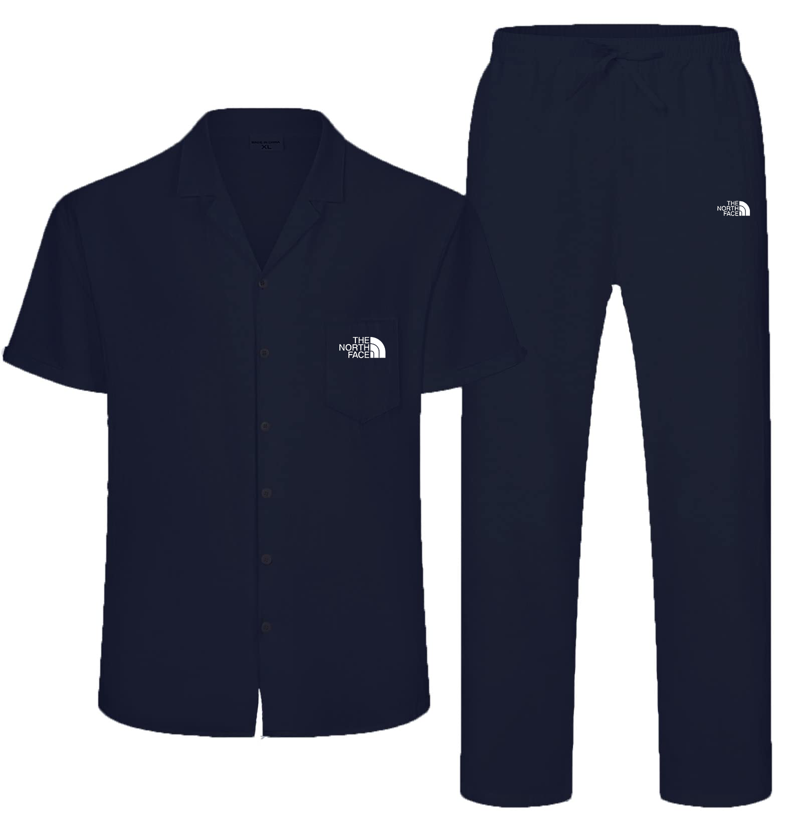 - ___sign___hirts for men collar vintage V-shaped design.The shirt has buttons, a chest pocket, and an overall solid color for style.Men's pants have pockets on both sides to store belongings and an adjustable drawstring at the waist for a snug fit.