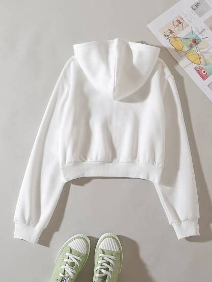 Solid Zip Up Drop Shoulder Thermal Lined Crop Hoodie