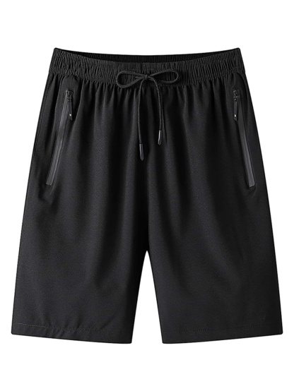 Men Drawstring Waist Zipper Pocket Shorts